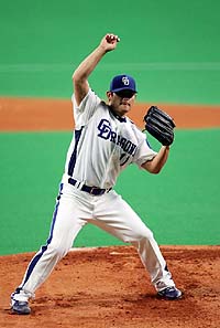 八木と山本昌。両方とも軟投派なため、点差の割に物凄い長い試合時間(4時間くらい)となった。